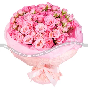 Любимой маме - шляпная коробка с розовыми и кремовыми кустовыми розами