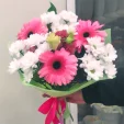 Глоток романтики – букет из кустовой хризантемы и розовых гербер