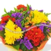 Стандартный: хризантема желтая кустовая - 2 шт., хризантема кустовая оранжевая - 2 шт., альстромерия оранжевая - 2 шт., статица - 4 шт., фетр желто - оранжевый, ваза.