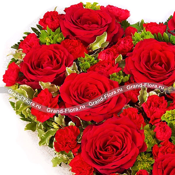 Стандартный: роза красная - 7 шт., гвоздика красная кустовая - 5 шт., рускус - 4 шт.,
